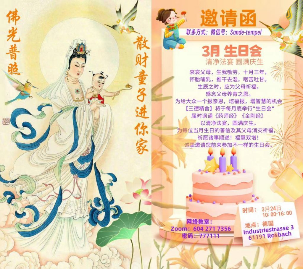 以清净法宴,圆满庆生,为每一位3月过生日的善信及其父母消灾祈福,祈愿诸事顺遂,福慧双增。