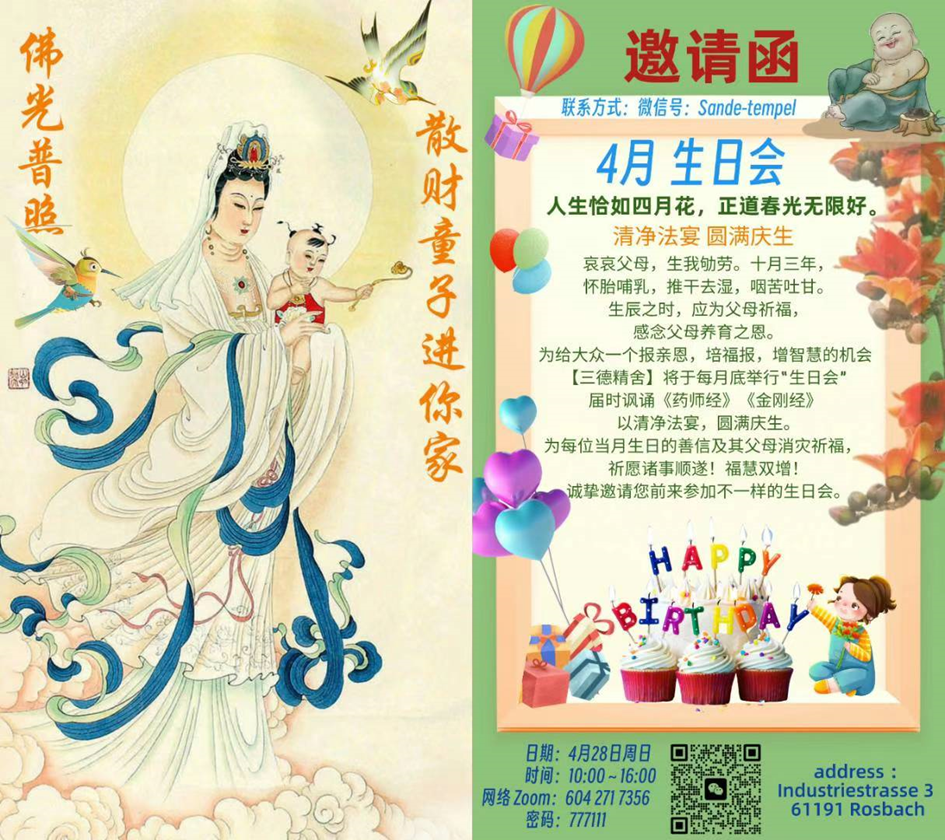 4月28日(周日),农历的三月二十,精舍第二次举办庆生会,为4月份过生日的:吴孖翠,施根华,贤喆,李博文, 潘芳, 李易知, Mattias Hermansson小马7位同学以诵读大乘经典、吃素、供灯的方式来庆生、念恩、报恩,同时也将功德回向给4月过生日同学们现在及已故的父母们。