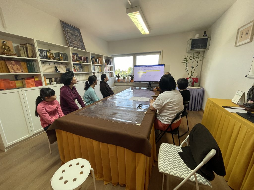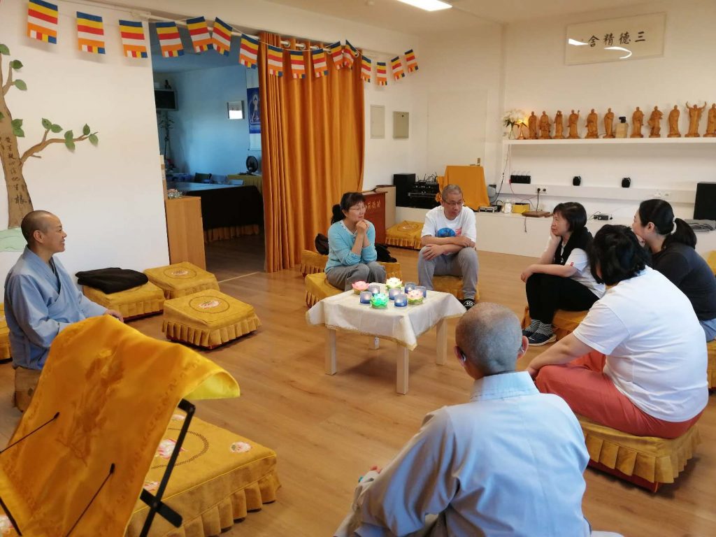 静坐、拜忏后一起交流分享、觅罪发露忏悔。
