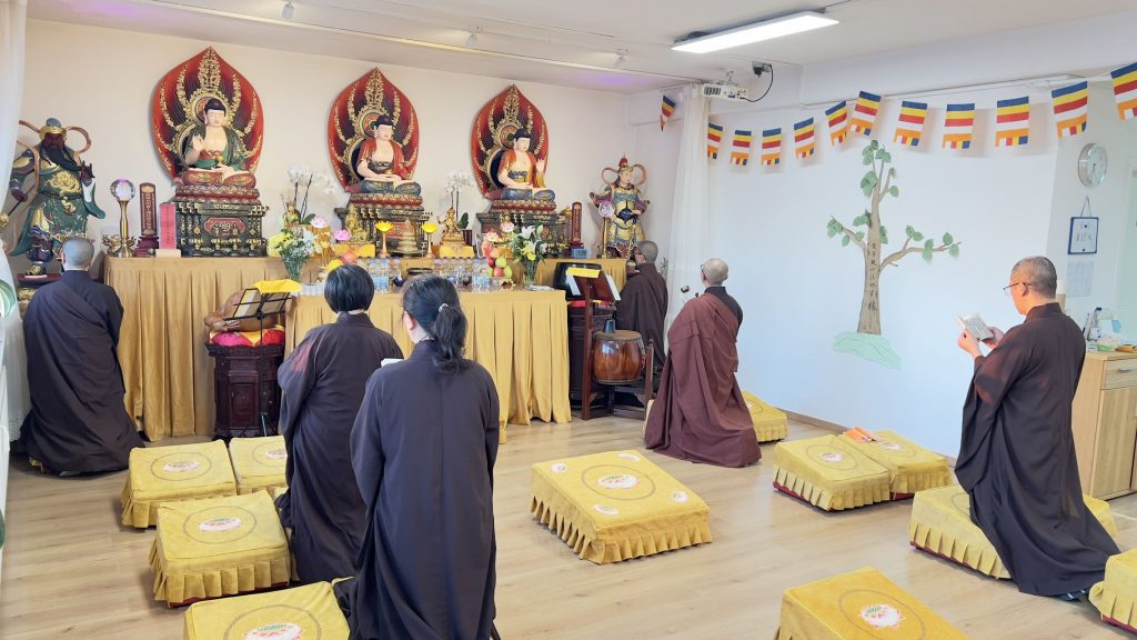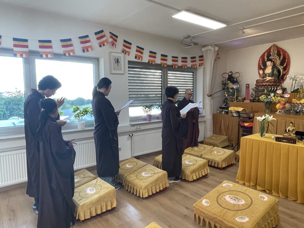 在端午节前一天,几位同学舍下世间心,来道场求受八关斋戒,令身心安定、三业清净的殊胜功德,来尽罪集资,来念恩报恩,让自己与所有众生获得最大利益。