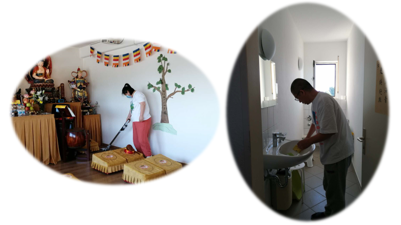 早斋后出坡庄严道场上午共学《道次第》及八关斋戒戒相学习